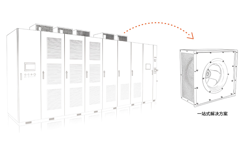 1. 采用施依洛外转子离心风机散热。